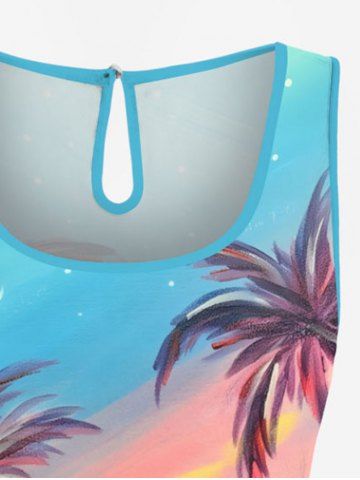 Coconut Tree Colorful Sky Moon Star Print Plus Size Matching Hawaii Beach Outfit For Couples - Light Blue
