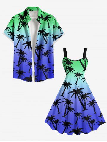 Matching Hawaiian Outfits > Coconut Tree Dip Dye Ombre Print Plus Size Matching Hawaii Beach Outfit For Couples