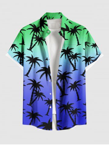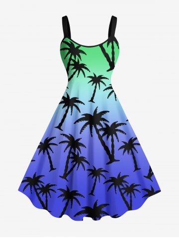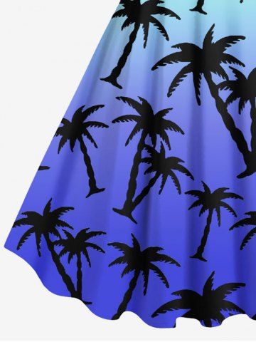 Coconut Tree Dip Dye Ombre Print Plus Size Matching Hawaii Beach Outfit For Couples - Blue