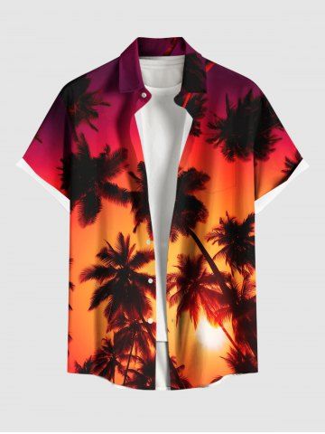 Matching Hawaiian Outfits > Coconut Tree Dip Dye Ombre Sunset Print Plus Size Matching Hawaii Beach Outfit For Couples