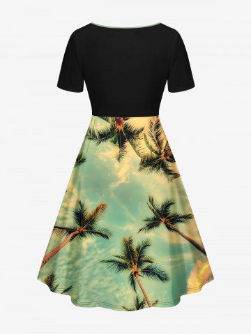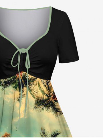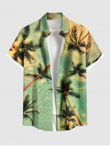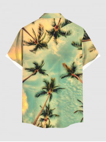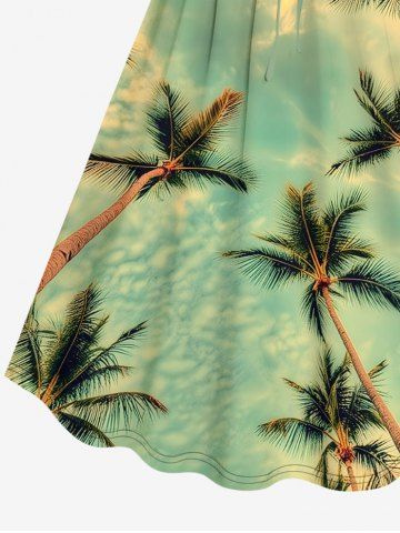 Coconut Tree Distressed Ombre Sky Cloud Print Plus Size Matching Hawaii Beach Outfit For Couples - Light Green
