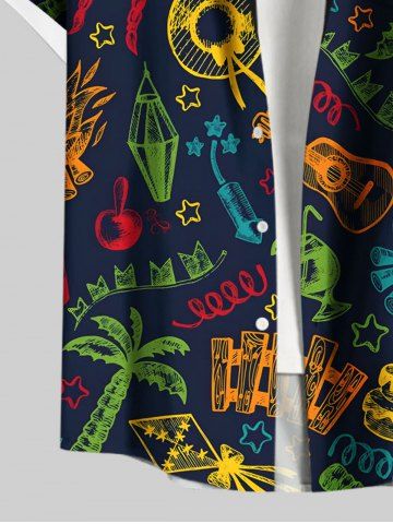 Matching Hawaiian Outfits > Coconut Tree Fire Flame Cake Guitar Print Plus Size Matching Hawaii Beach Outfit For Couples