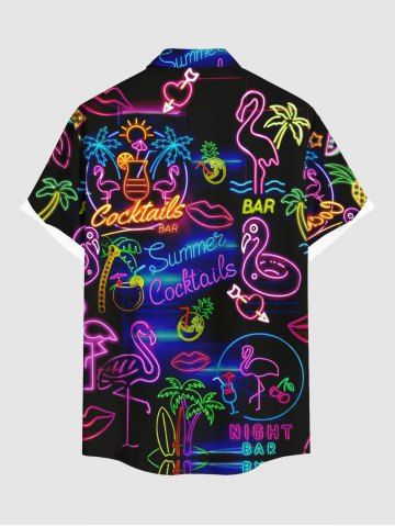 Coconut Tree Flamingo Juice Sun Neon Print Plus Size Matching Hawaii Beach Outfit For Couples - Black