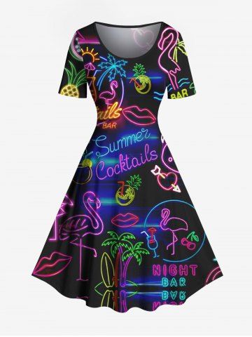 Matching Hawaiian Outfits > Coconut Tree Flamingo Juice Sun Neon Print Plus Size Matching Hawaii Beach Outfit For Couples