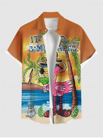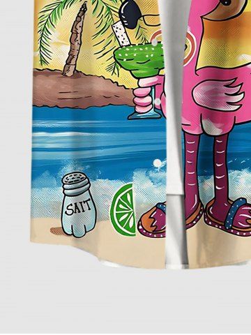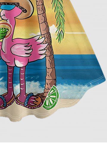 Matching Hawaiian Outfits > Coconut Tree Flamingo Seascape Fruit Juice Print Plus Size Matching Hawaii Beach Outfit For Couples