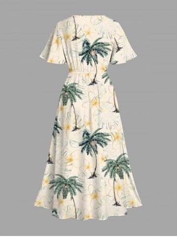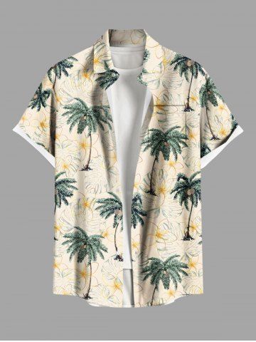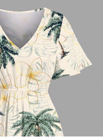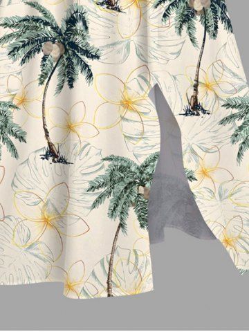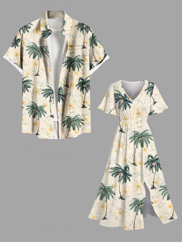 Matching Hawaiian Outfits > Coconut Tree Flowers Tropical Leaf Print Plus Size Matching Hawaii Beach Outfit For Couples