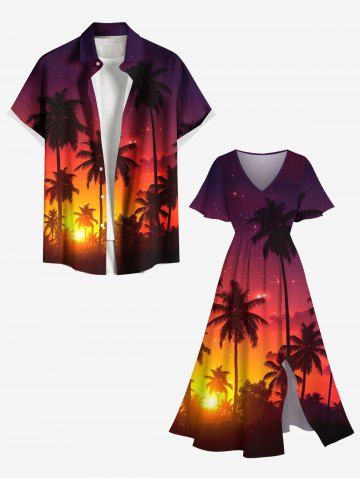 Matching Hawaiian Outfits > Coconut Tree Galaxy Print Plus Size Matching Hawaii Beach Outfit For Couples
