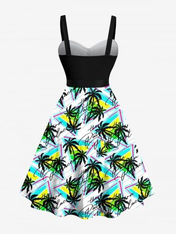 Coconut Tree Geometric Colorblock Letters Print Plus Size Matching Hawaii Beach Outfit For Couples - Green
