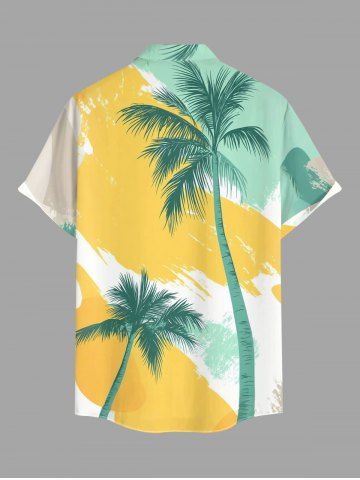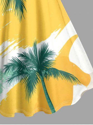 Coconut Tree Graffiti Colorblock Print Plus Size Matching Hawaii Beach Outfit For Couples - Yellow