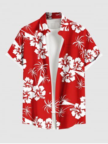 m*****r5Coconut Tree Hibiscus Flower Two Tone Print Plus Size Matching Hawaii Beach Outfit For CouplesColor: REDto small