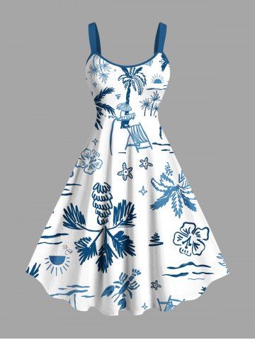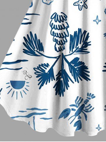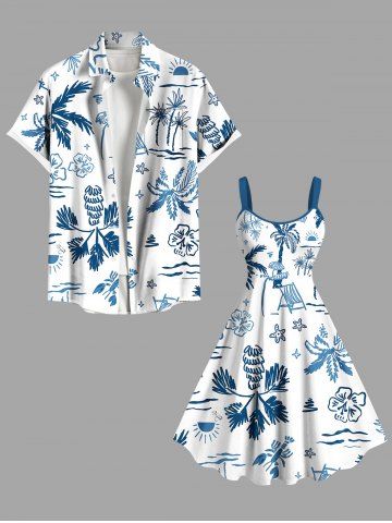 Matching Hawaiian Outfits > Coconut Tree Hibiscus Flowers Starfish Sun Print Plus Size Matching Hawaii Beach Outfit For Couples