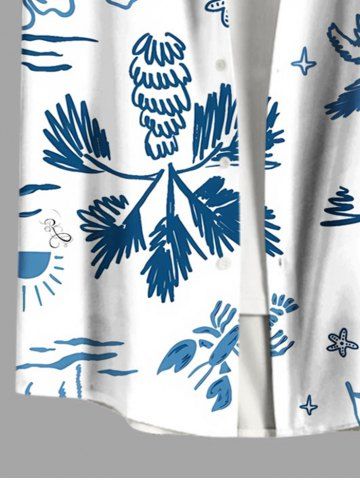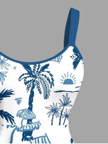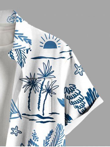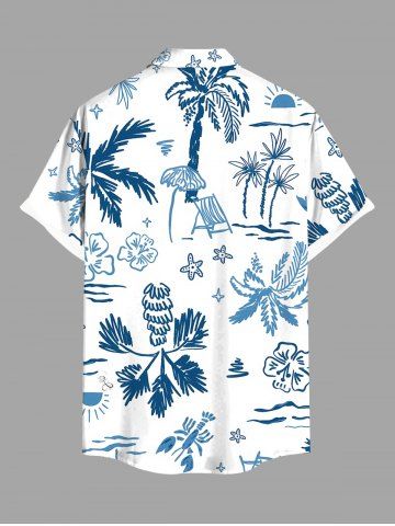 Coconut Tree Hibiscus Flowers Starfish Sun Print Plus Size Matching Hawaii Beach Outfit For Couples - White