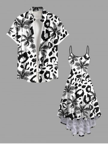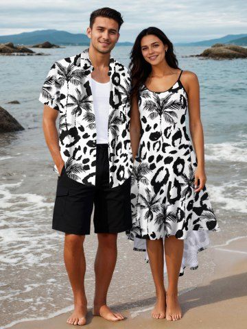 Matching Hawaiian Outfits > Coconut Tree Leopard Print Plus Size Matching Hawaii Beach Outfit For Couples