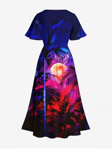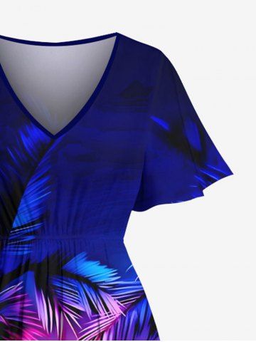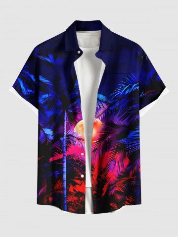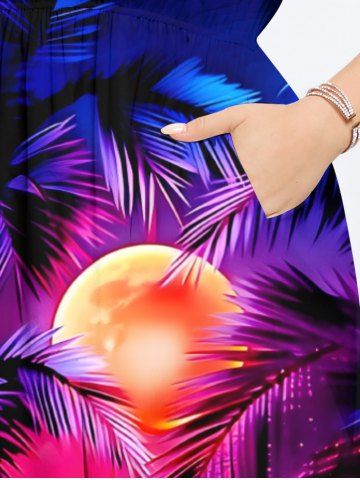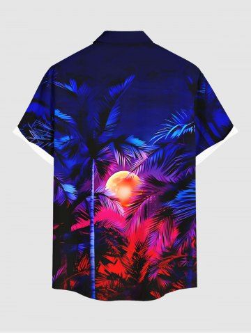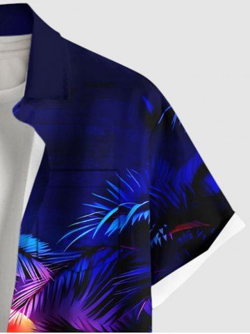 Coconut Tree Moon Neon Glitter 3D Print Plus Size Matching Hawaii Beach Outfit For Couples - Blue