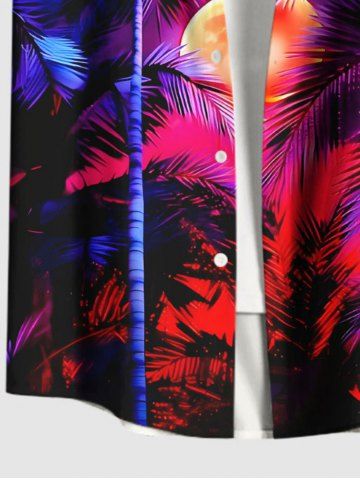 Matching Hawaiian Outfits > Coconut Tree Moon Neon Glitter 3D Print Plus Size Matching Hawaii Beach Outfit For Couples