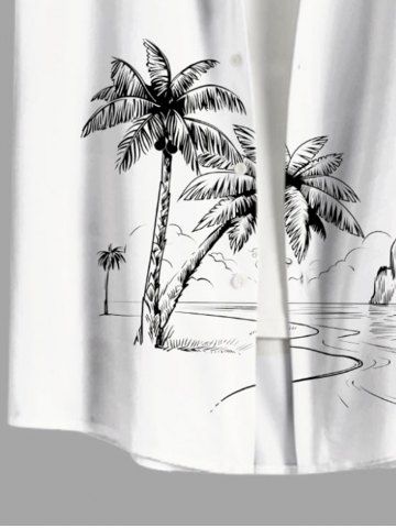 Coconut Tree Mountain Seascape Print Plus Size Matching Hawaii Beach Outfit For Couples - White