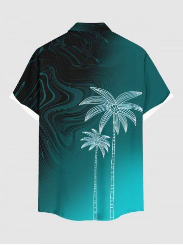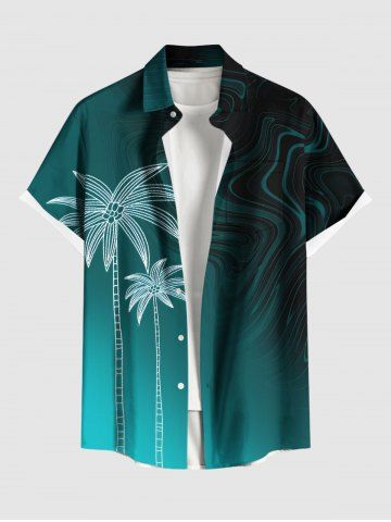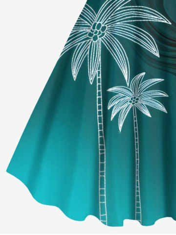 Coconut Tree Ocean Currents Print Plus Size Matching Hawaii Beach Outfit For Couples - Deep Green