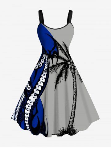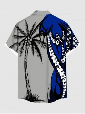 Coconut Tree Octopus Colorblock Print Plus Size Matching Hawaii Beach Outfit For Couples - Light Gray