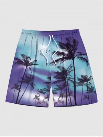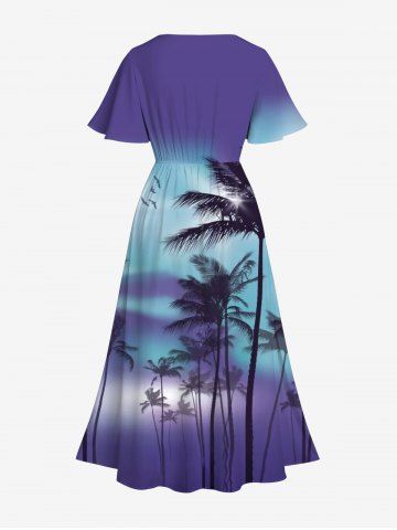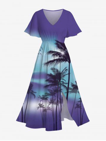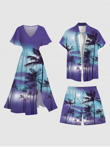 Matching Hawaiian Outfits > Coconut Tree Ombre Colorblock Print Plus Size Matching Hawaii Beach Outfit For Couples