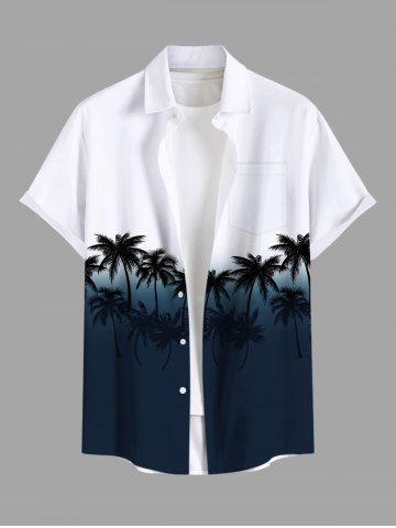 Coconut Tree Ombre Colorblock Print Plus Size Matching Hawaii Beach Outfit For Couples - Midnight Blue