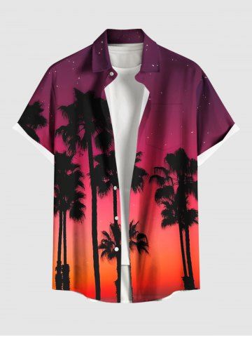 Matching Hawaiian Outfits > Coconut Tree Ombre Dusk Galaxy Print Plus Size Matching Hawaii Beach Outfit For Couples