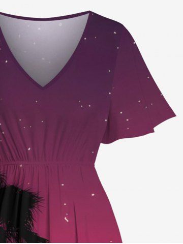 Coconut Tree Ombre Dusk Galaxy Print Plus Size Matching Hawaii Beach Outfit For Couples - Red
