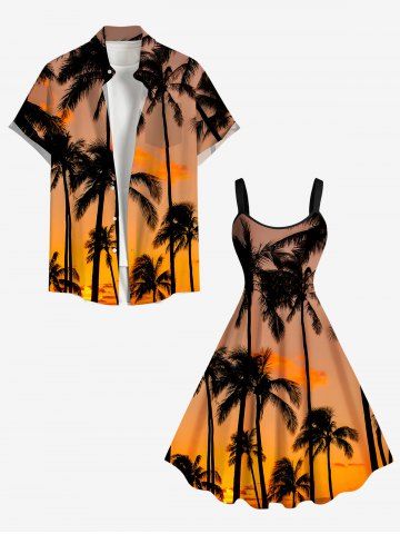 Matching Hawaiian Outfits > Coconut Tree Ombre Dusk Print Plus Size Matching Hawaii Beach Outfit For Couples
