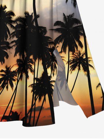 Matching Hawaiian Outfits > Coconut Tree Ombre Dusk Print Plus Size Matching Hawaii Beach Outfit For Couples