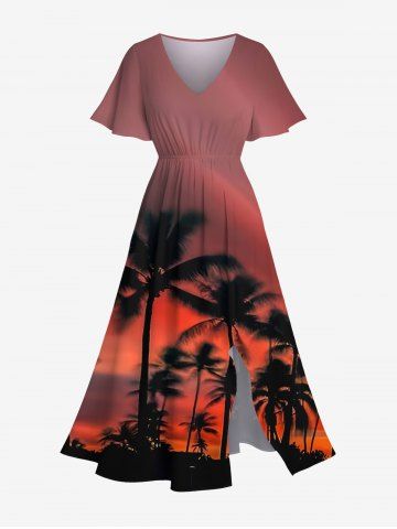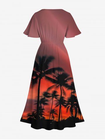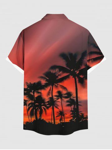 Coconut Tree Ombre Dusk Print Plus Size Matching Hawaii Beach Outfit For Couples - Red