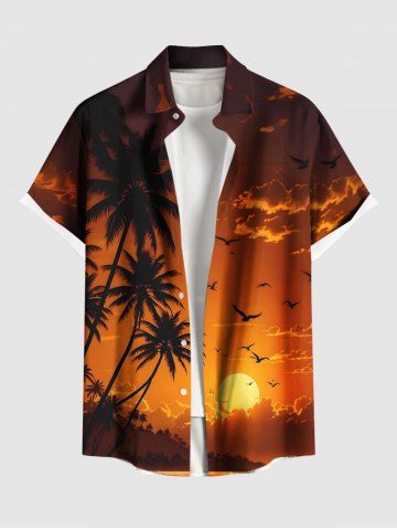Coconut Tree Ombre Dusk Sunset Print Plus Size Matching Hawaii Beach Outfit For Couples - Orange