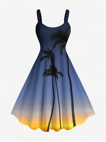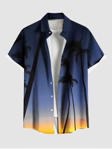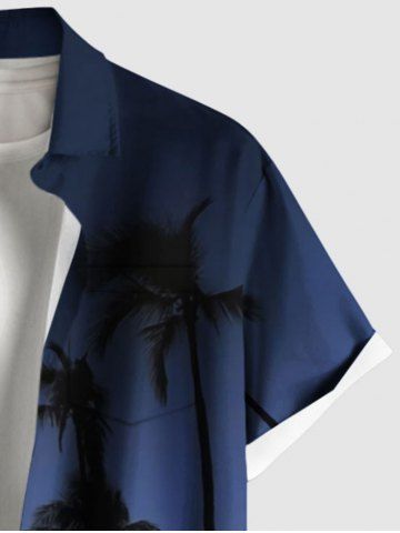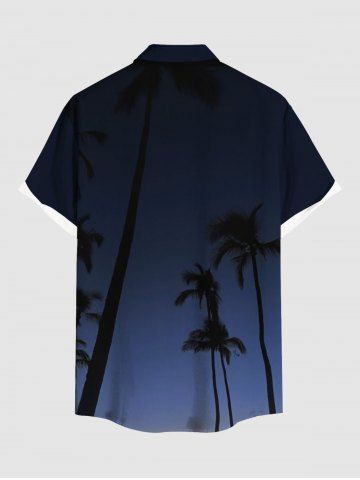 Coconut Tree Ombre Galaxy Print Plus Size Matching Hawaii Beach Outfit For Couples - Deep Blue