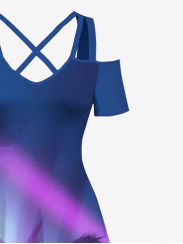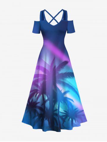 Coconut Tree Ombre Light Beam Print Plus Size Matching Hawaii Beach Outfit For Couples - Blue