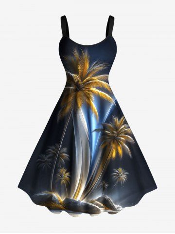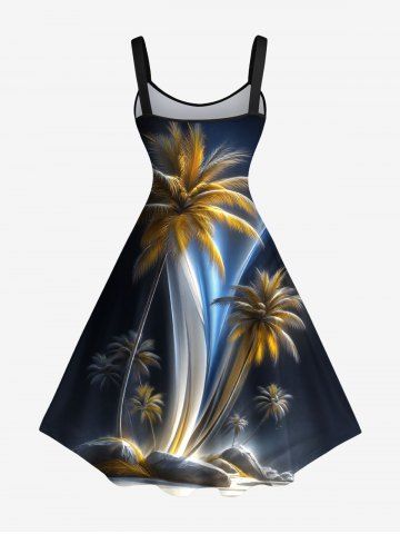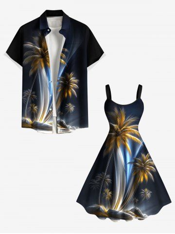 Matching Hawaiian Outfits > Coconut Tree Ombre Light Beam Print Plus Size Matching Hawaii Beach Outfit For Couples