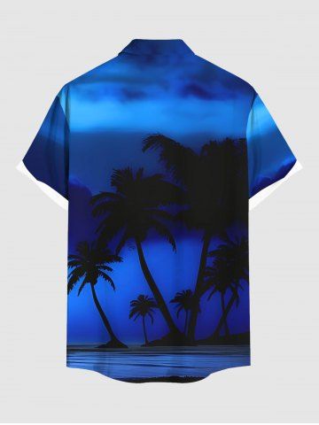Coconut Tree Ombre Print Plus Size Matching Hawaii Beach Outfit For Couples - Blue