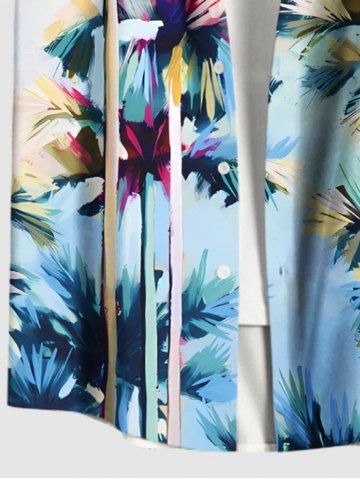 Coconut Tree Ombre Print Plus Size Matching Hawaii Beach Outfit For Couples - Light Blue