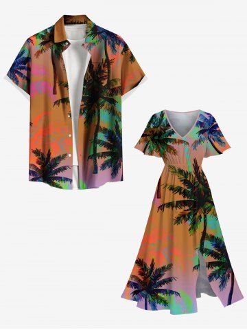 Matching Hawaiian Outfits > Coconut Tree Ombre Print Plus Size Matching Hawaii Beach Outfit For Couples