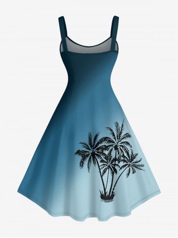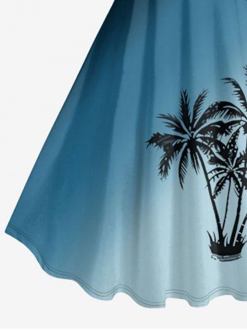 Coconut Tree Ombre Print Plus Size Matching Hawaii Beach Outfit For Couples - Peacock Blue