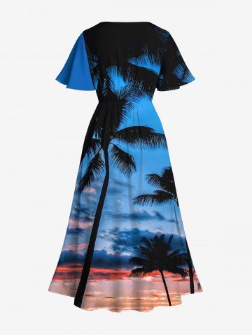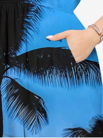 Coconut Tree Ombre Sky Dusk Print Plus Size Matching Hawaii Beach Outfit For Couples - Sky Blue
