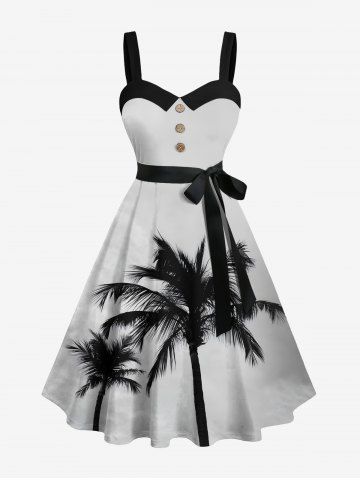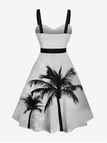 Coconut Tree Ombre Sky Print Plus Size Matching Hawaii Beach Outfit For Couples - Gray