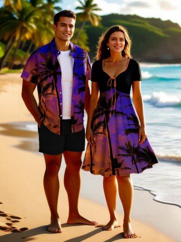 j*****n4Coconut Tree Ombre Sky Print Plus Size Matching Hawaii Beach Outfit For CouplesColor: BLACKBigger than expected need to order new sizes