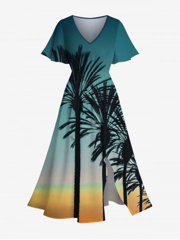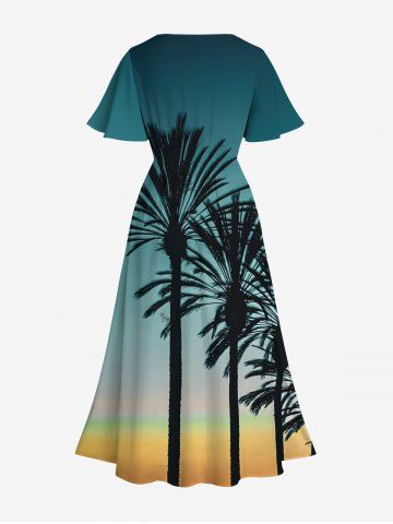Coconut Tree Ombre Sky Print Plus Size Matching Hawaii Beach Outfit For Couples - Green