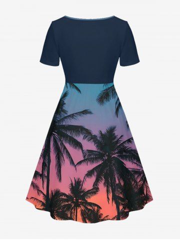 Coconut Tree Ombre Sky Print Plus Size Matching Hawaii Beach Outfit For Couples - Deep Blue