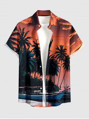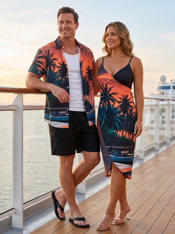Matching Hawaiian Outfits > Coconut Tree Ombre Sky Print Plus Size Matching Hawaii Beach Outfit For Couples