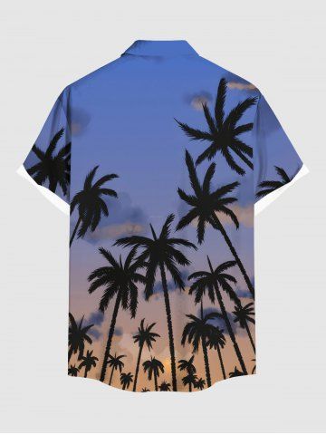 Coconut Tree Ombre Sky Print Plus Size Matching Hawaii Shirt and Dress Beach Outfit For Couples - Blue