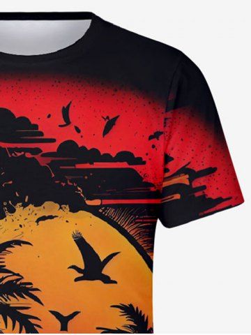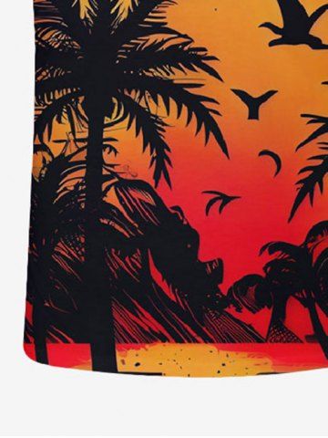Coconut Tree Ombre Sunset Bird Cloud Print Plus Size Matching Hawaii Beach Outfit For Couples - Orange