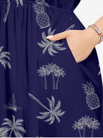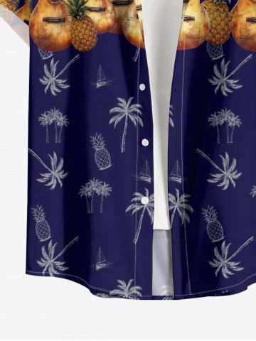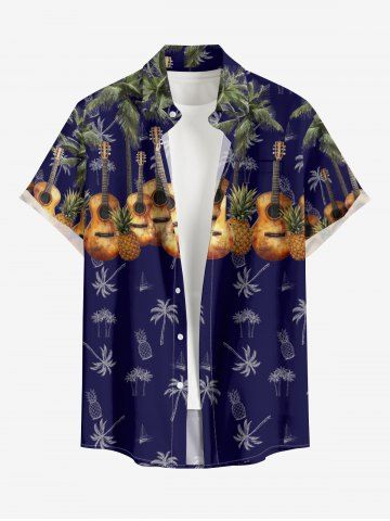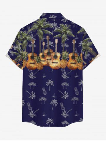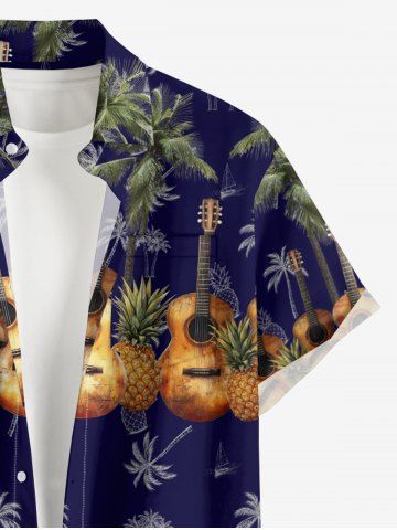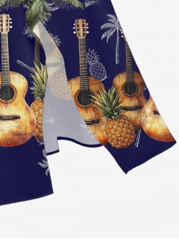 Coconut Tree Pineapple Guitar Print Plus Size Matching Hawaii Beach Outfit For Couples - Deep Blue