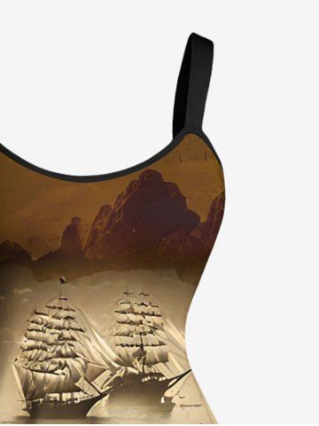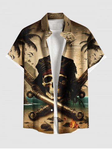 Coconut Tree Pirate Skull Fire Flame Boat Cruise Print Plus Size Matching Hawaii Beach Outfit For Couples - Apricot