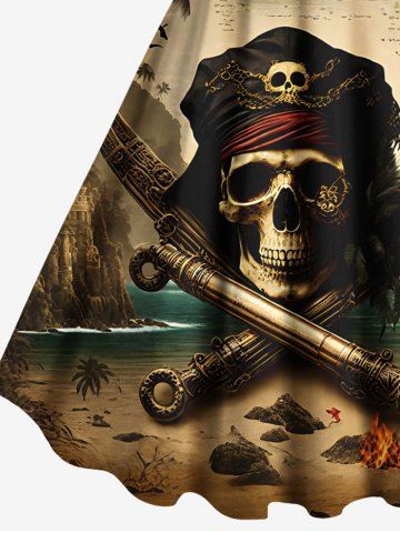 Matching Hawaiian Outfits > Coconut Tree Pirate Skull Fire Flame Boat Cruise Print Plus Size Matching Hawaii Beach Outfit For Couples