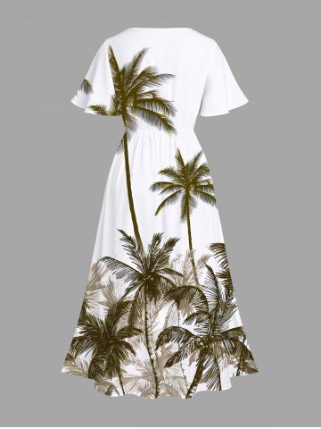 Coconut Tree Print Plus Size Matching Hawaii Beach Outfit For Couples - White