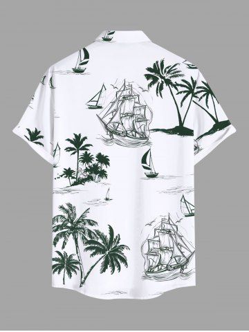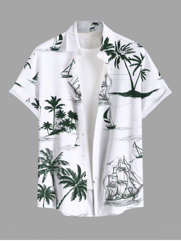 Coconut Tree Sailboat Cruise Print Plus Size Matching Hawaii Beach Outfit For Couples - White